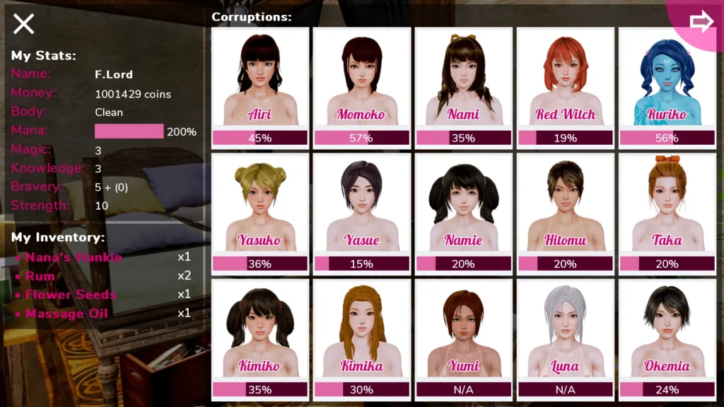 * The Stats Screen: Keep a close eye on this! It not only shows your corruption, money, and mana but also your relationships with every major character. A small heart icon next to a name is your best friend.